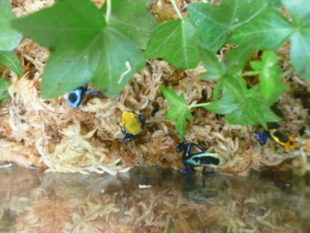The plastic containers housed frogs. I think this picture is a great candidate for speech bubbles!