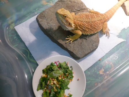 This bearded dragon gets a healthy diet. I was very impressed by the passion and obviously well taken care of dragons from the breeders at Carolina Designer Dragons. Our next future addition to our household may be one of their sweet dragons!