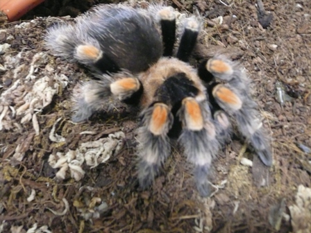 The containers also housed tarantulas and other eight legged creatures. This particular specimen, a “Cameroon Giant Red Baboon”, turned upside down for his (or her!) picture. It turns out this particular tarantula like to burrow.